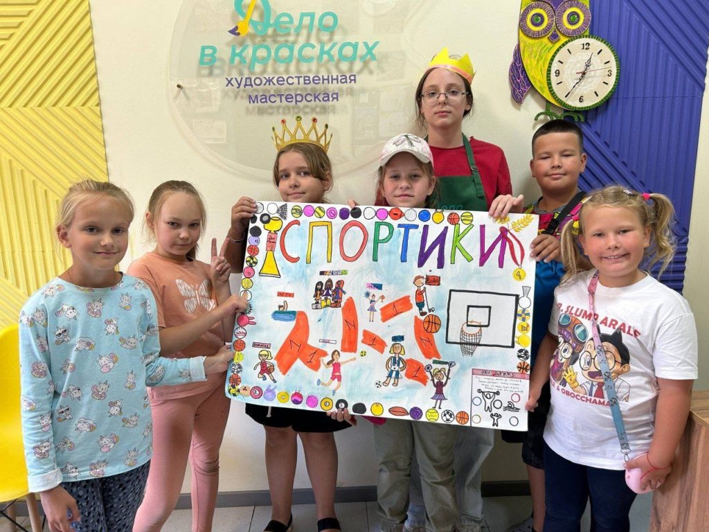 Летом проводятся смены с разными направлениями и тематикой. Например, в июне были программы, связанные со спортом, а это значит, что дети не только выполняли упражнения на улице, но и переносили это на формат искусства- лепка из глины, рисунки, также посещение музея.