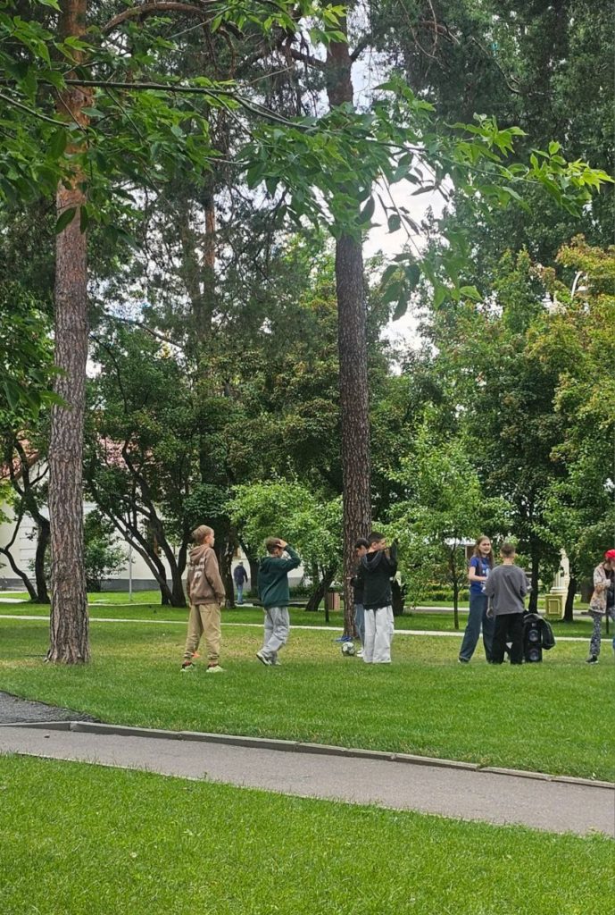 ВДНХ – отличное место для проведения детских программ с точки зрения свежего воздуха. Практически дети отдыхают за городом. Территория огромная, зеленая, много полян, на которых можно расположиться. Рядом со зданием «Городских каникул» высокие сосны, среди которых дети играют в активные игры, здесь же проводятся танцы и проходят активности, в хорошую погоду выносят на улицу столы со стульями.