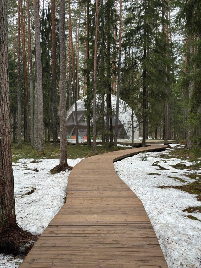 - Творческие пространства: Концертный зал, танцевальный и кинозал, геокупол, который расположен среди сосен и в темное время суток очень красиво подсвечивается, создавая ощущение сказки.