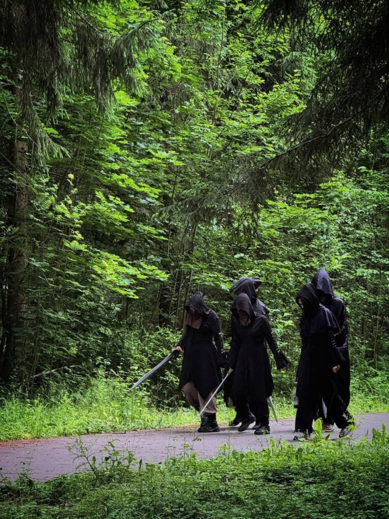 Костюмы или части костюмов дети по возможности привозят и мастерят сами. У наставников профессиональные костюмы и реквизит, меняют даже цвет глаз (желтые, белые). По негласным условиям, человек, надевающий маску – новый персонаж, а не знакомый куратор. Дети в такую игру быстро включаются.