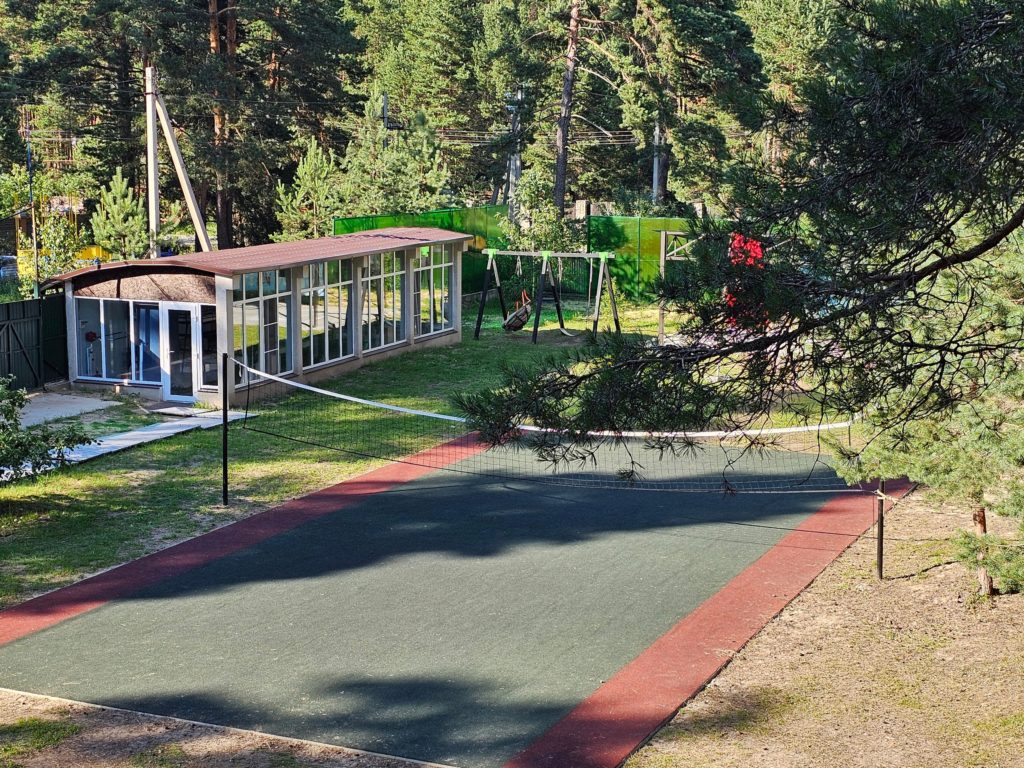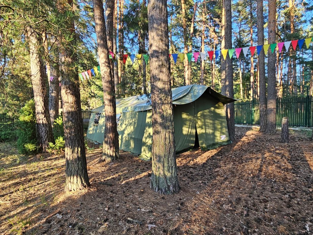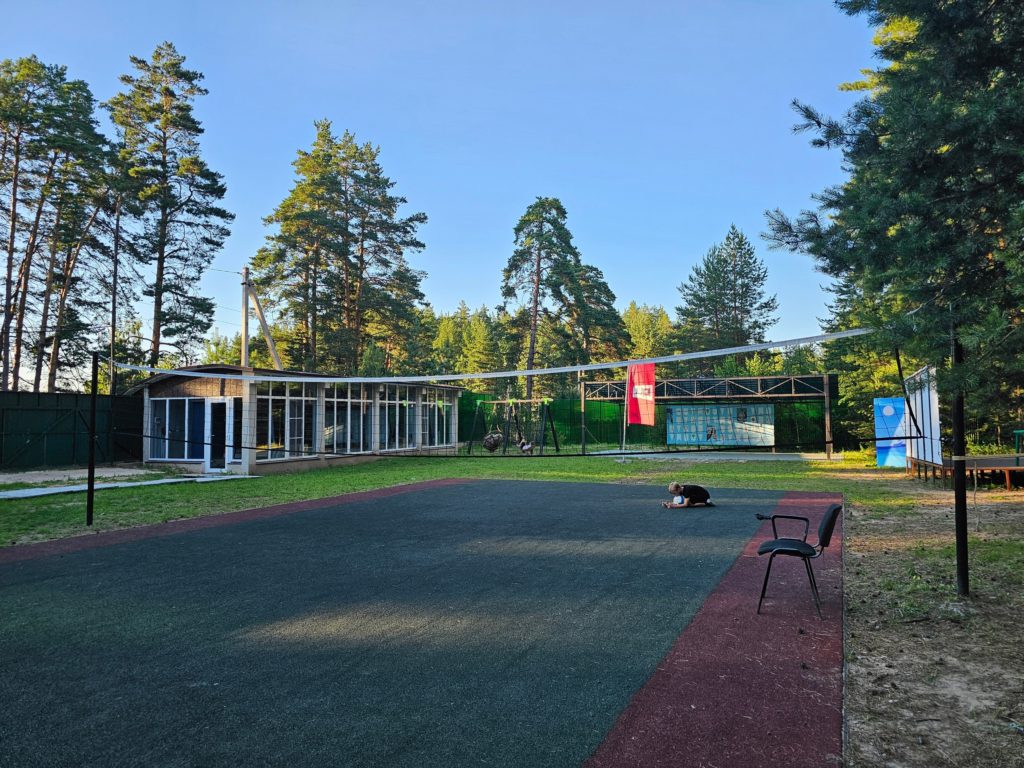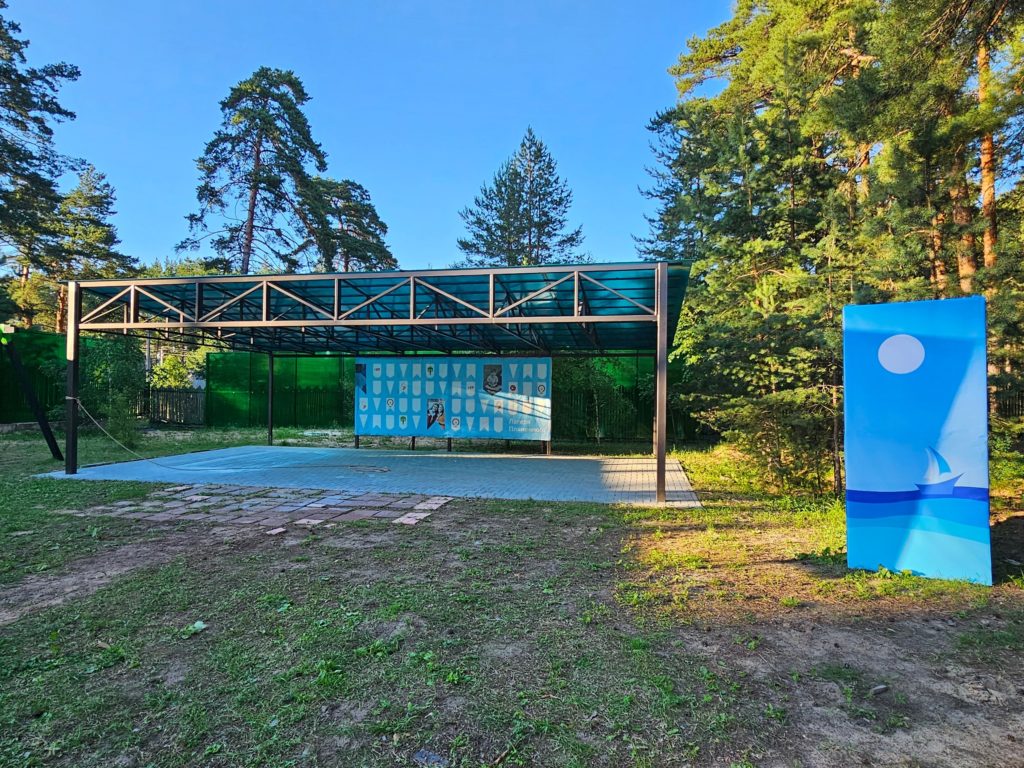 Инфраструктура: настольный теннис, батуты, качели, беседки, костровое место, волейбольная площадка с покрытием, палатки (шатры) для ночлега на улице. Для купания в жаркую погоду монтируется бассейн, дети загорают по желанию под присмотром. Тропа Паустовского в пешей доступности, детям организуют экскурсию в течение смены.